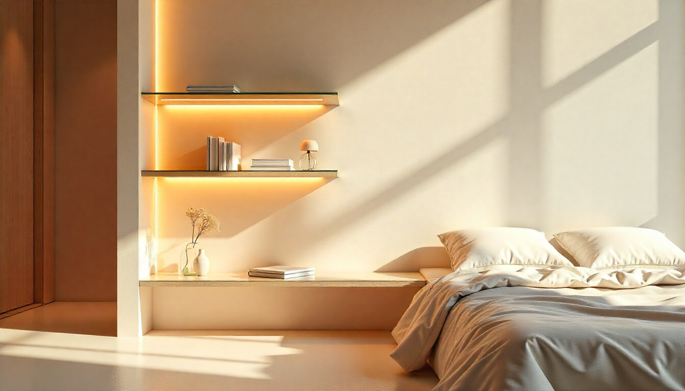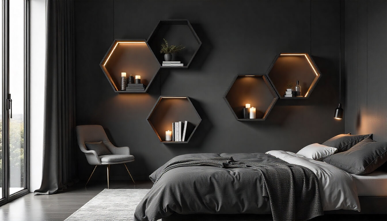 Transform your bedroom corner into a gallery with artistic corner shelves. Combine books with framed art, sculptures, and collectibles for a curated look. Spotlighting enhances textures and colors, making it visually dynamic.